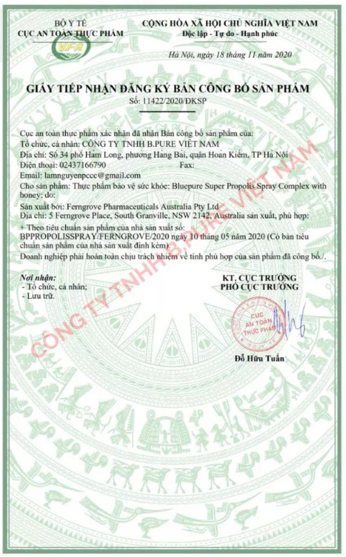 Số Giấy XNCB: 11422/2020/ĐKSP