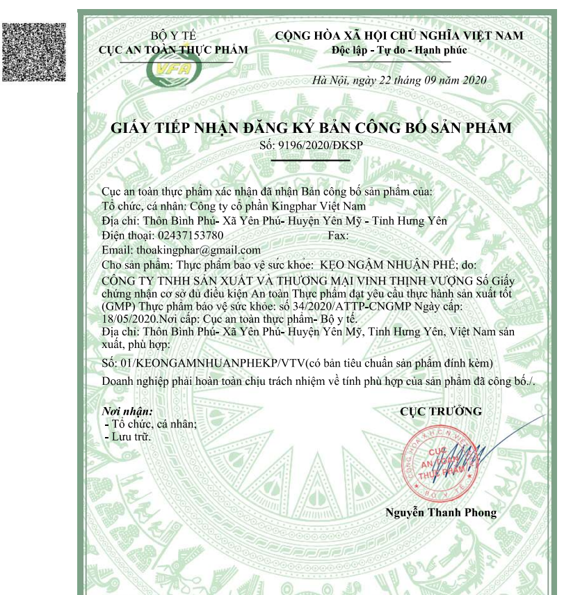 CÔNG TY CỔ PHẦN KINGPHAR VIỆT NAM