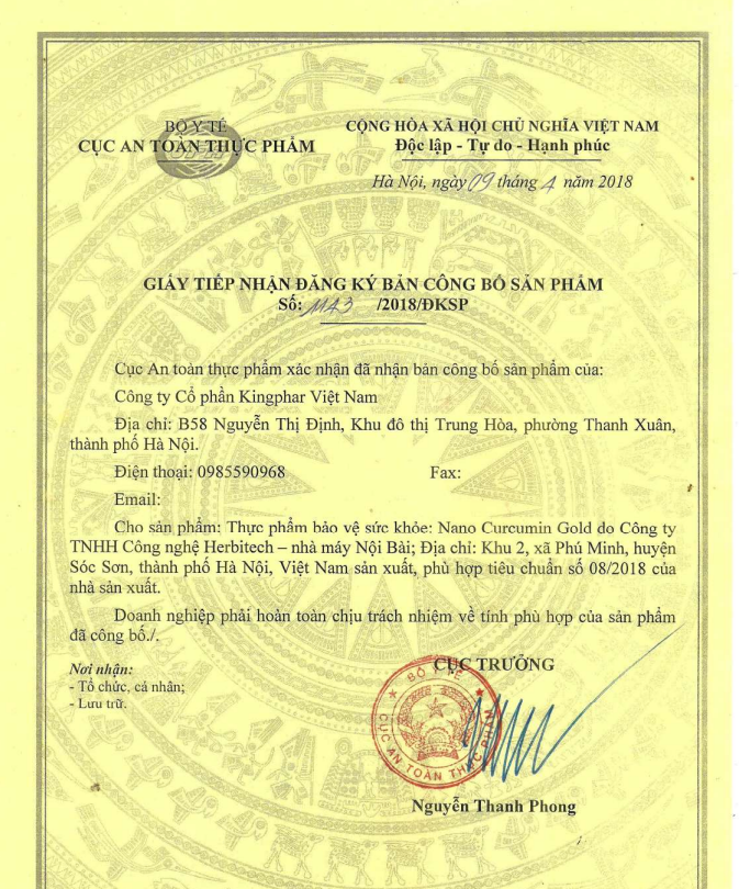 - Sản phẩm Nano Curcumin Gold Kingphar không phải là thuốc và không có tác dụng thay thế thuốc chữa bệnh.