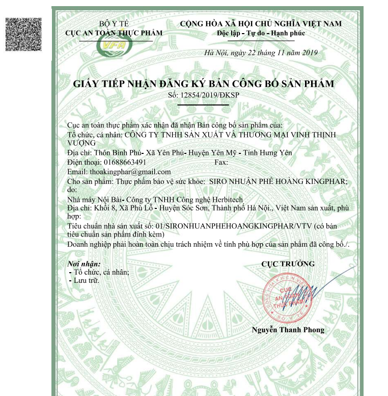 Siro ho bổ phế Nhuận Phế Hoàng Kingphar 125ml