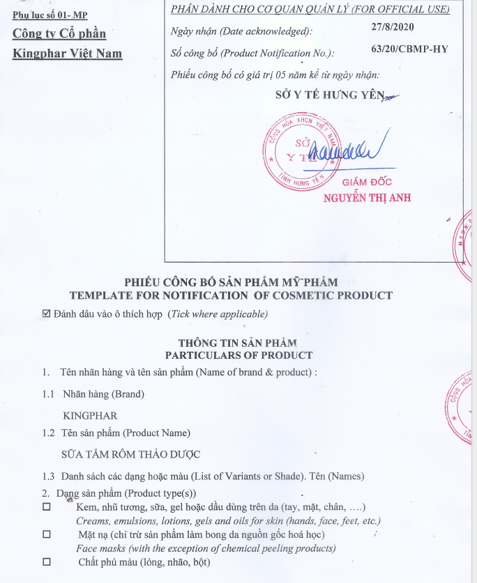 Sản phẩm của: Công ty CP Kingphar Việt Nam