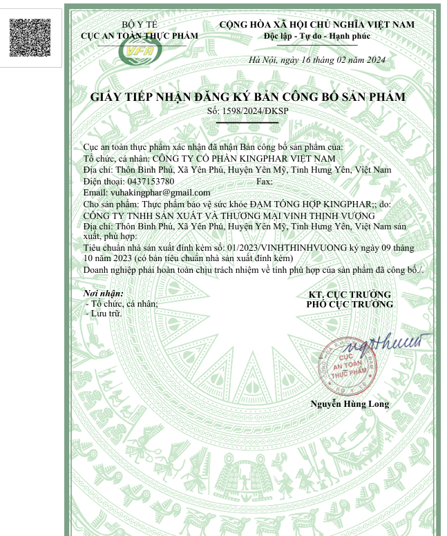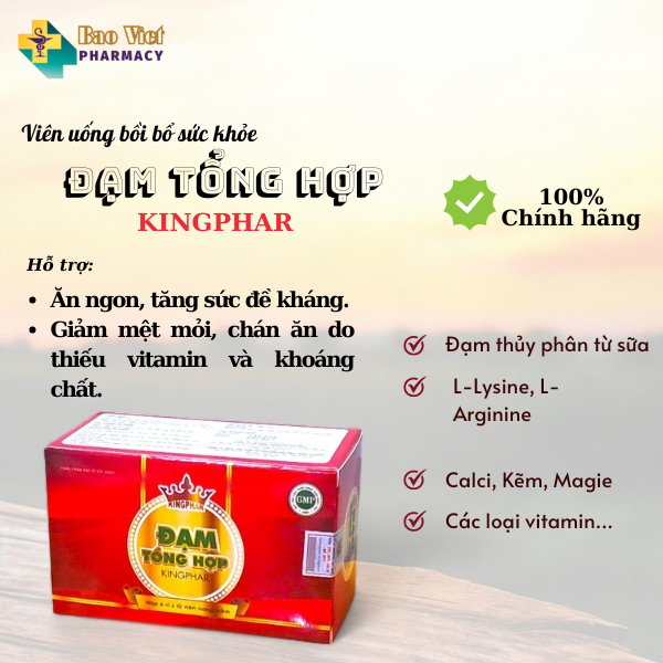 Đạm Tổng Hợp Kingphar, giúp hỗ trợ ăn ngon, tăng cường sức đề kháng, bồi bổ sức khỏe cho cơ thể.