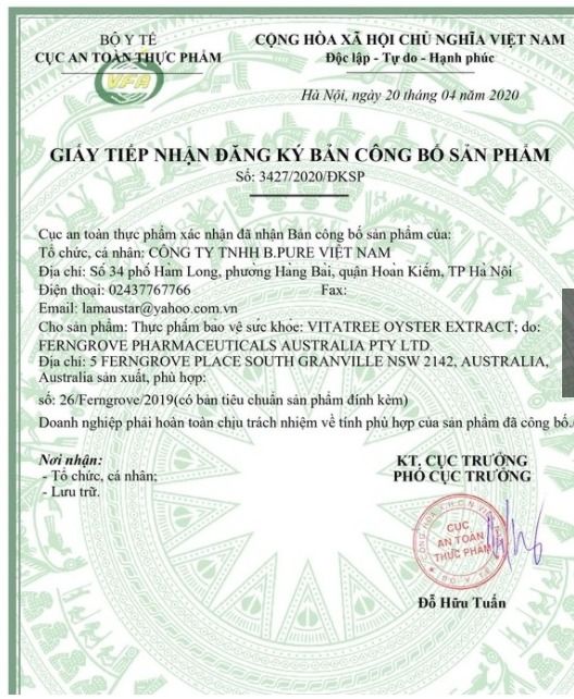 Hàu tốt cho quý ông là thế, nhưng khó để tìm mua vì hàu khá đắt đỏ, khó tìm nguồn thực phẩm tươi sống. Thay vào đó, có thể bồi bổ cho phái mạnh bằng thực phẩm chức năng tinh chất hàu tươi Vitatree Oyster Extract được sản xuất và đóng gói 100% tại Úc.