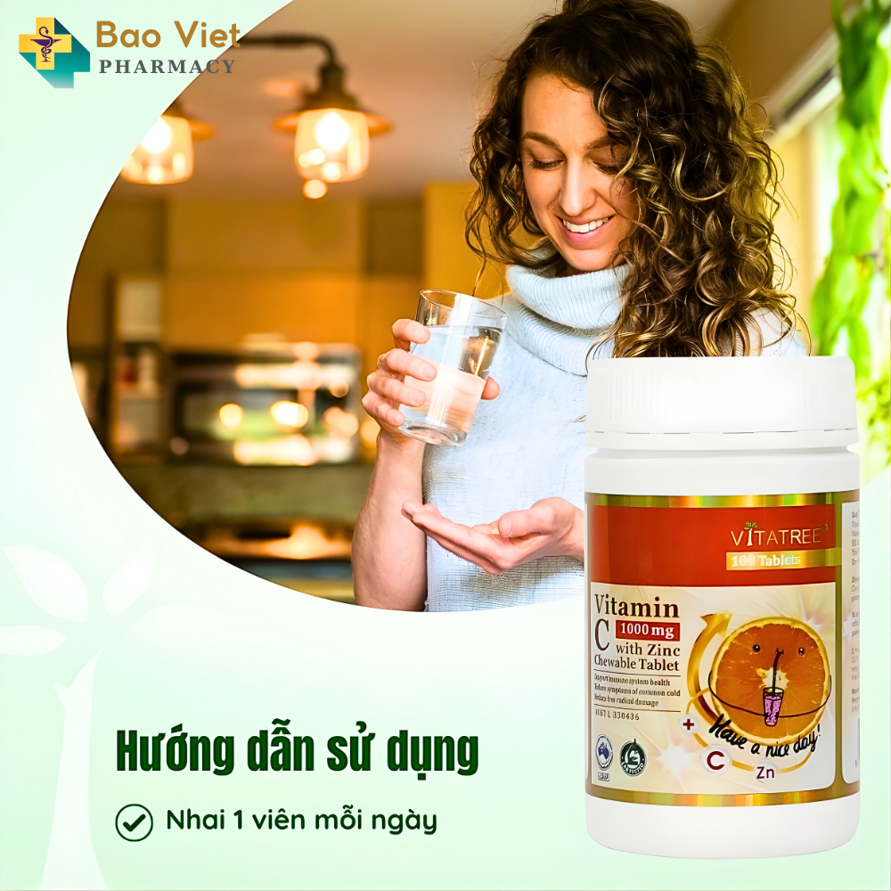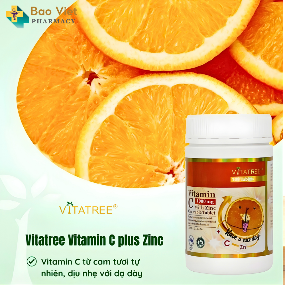 Vitatree Vitamin C 1000mg with ZinC lọ 100 viên nhai